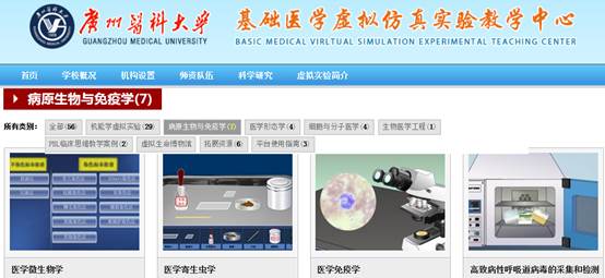 虚拟仿真实验教学平台涉及本学科约40个项目,可部分满足学生学习要求。平台中的虚拟仿真实验采用动画虚拟、真实视频等多种方式,使学生从直观、微观,亲自操作等多方面感受真实和虚拟实验。实验课的在线教学与虚拟仿真实验有机结合,有效促进了学生牢固掌握各种规范的基本实验技能。